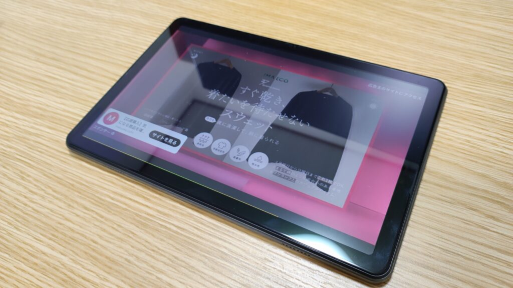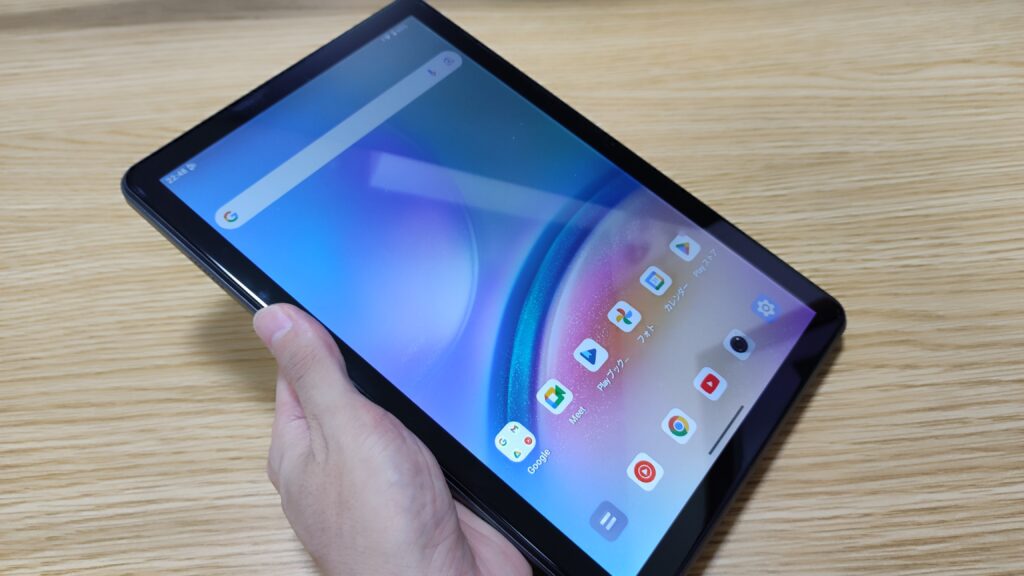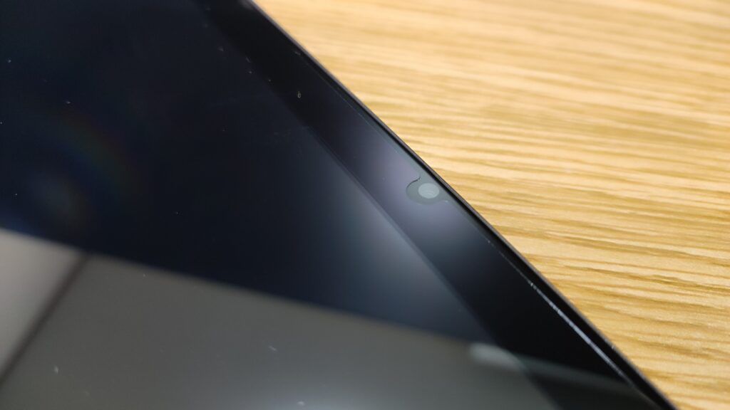 ベゼル(縁):極端に薄いわけではありませんが、動画視聴時に誤って画面を触ってしまうのを防ぐ適度な幅があります。