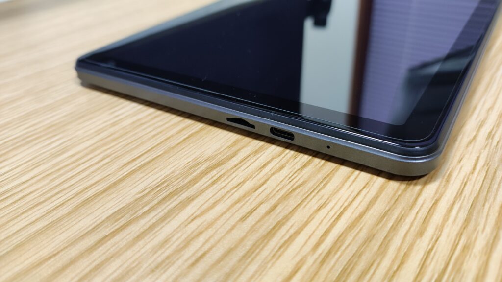 ポート類:本体側面には、USB Type-Cポート、MicroSDカードスロット(ストレージ拡張用)、そして嬉しい3.5mmイヤホンジャックが確認できます。